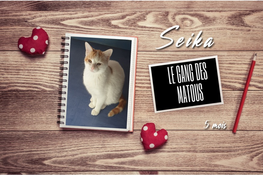 Seika est une petite chatonne de 5 mois environ. Elle a été récupérée après maintes tentatives dans le jardin d'un particulier qui se retrouve envahi de chats errants. Devant cette situation, le gang des matous a décidé de lui venir en aide, en récupérant les derniers chatons et en faisant stériliser les mamans. 3 des 4 chatons récupérés ont trouvé une famille et 2 mamans ont été stérilisées. Reste Seika qui est restée dehors plus longtemps et qui a son arrivée s'est montrée très craintive. Elle a pourtant......