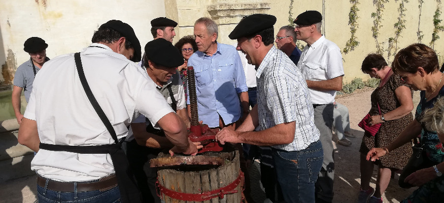 C'etait l'un des événements phares de cette 36e édition des Journées du patrimoine, dans le département : les premières vendanges des vignes sur les terrasses latérales de l'escalier monumental d'Auch, l'un des édifices les plus emblématiques de la ville. Le temps d'un jour, les édiles et les Auscitains se sont mués en vendangeur et se sont lancés à la récolte des grappes sur les 413 pieds de différents cépages locaux qui composent le vignoble de l'escalier monumental, sous le regard et les conseils avisés de Joel Boueilh, président de la cave de Plaimont. Les sceaux bien remplis ont ensuite été portés jusqu’au pressoir, mélangeant blanc et rouge pour donner naissance à un jus rosé, dégusté sur place par les élus qui avaient tenu à participer à cette cueillette pour le moins insolite : « C’est un beau moment de fête et l’aboutissement d’une initiative audacieuse qui fait sens aujourd’hui. La vigne et la viticulture sont des marqueurs culturels et économiques très forts du patrimoine et Auch, avec son escalier, doit être une porte d’entrée pour les circuits oenotouristiques. Je salue le savoir-faire des vignerons de Plaimont qui ont œuvré avec les agents de la ville pour la réussite de cette innovation patrimoniale » a souligné le maire d’Auch, en présence de Joël Boueilh et Olivier Bourdet-Pees, président et directeur du Groupe Plaimont, de la conseillère régionale Fatma Adda et du sénateur Franck Montaugé dont l’obstination à voir la vigne être implantée dans l’escalier monumental a été récompensée « car elle fait plus que jamais partie de notre patrimoine économique et culturel ».