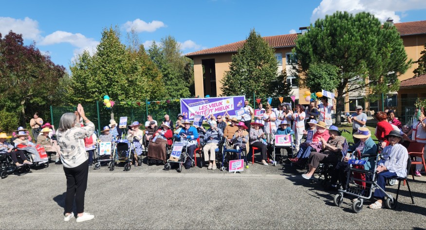 Même si l'heure est grave, la directrice de l'établissement a souhaité tout de même rendre « festive » cette mobilisation. C'est avec une chanson spécialement écrite par l'occasion sur les airs de Joe Dassin et aux rythmes des maracas que les salariés, résidents et leurs proches ont fait entendre leurs préoccupations au maire d'Auch, Christian Laprébende, présent pour l'occasion, ainsi qu'aux attachés parlementaires des deux sénateurs gersois. Valérie Oulé, la directrice de l'établissement, espère désormais que le nouveau gouvernement en place depuis ce week-end fera "du grand âge" une grande cause nationale avec la mise en place d'une loi éponyme annoncée depuis plusieurs années mais pour l'heure jamais entrée en application.