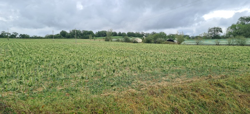Ce jeudi en fin d'après-midi, un nouvel épisode de grêle a touché le département des Hautes-Pyrénées. Notamment sur la commune de Castelnau-Magnoac, où les champs ont été lourdement endommagés. Les pompiers sont mobilisés depuis le début de la semaine pour des interventions liées aux intempéries. Les communes les plus touchées sont notamment Vic-en-Bigorre, Saint-Lézer ou encore Montaner. Selon nos informations, les secours doivent encore traiter 115 interventions sur le nord du département, dont certaines liées au phénomène de ce jeudi soir.