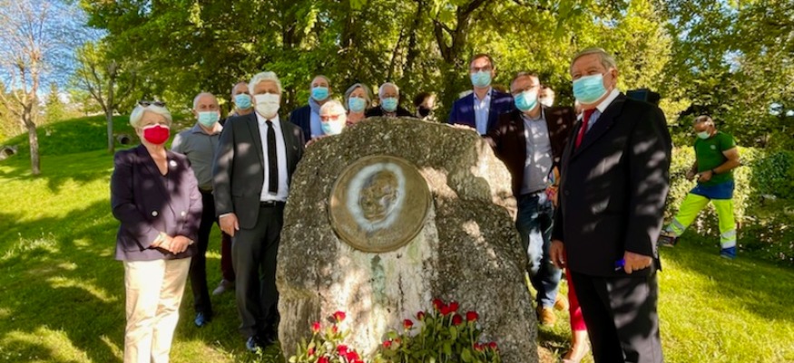 Gisèle Biemouret, Philippe Martin, Hélène Rozis Le Breton et Philippe Dupouy (conseil.dep.), Yvon Montané (ancien député), Michael Aurora ont déposé des gerbes de fleurs sur la stèle Françcois Mitterrand à Mauvezin.