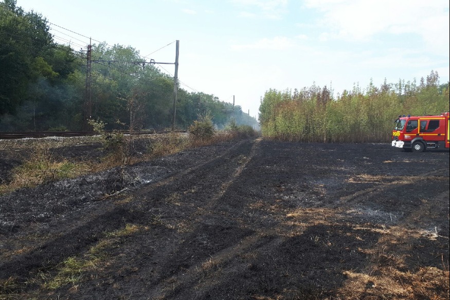 Le trafic SNCF est fortement perturné depuis 14h entre Agen et Toulouse, dans la région de Grisole, en raison de plusieurs incendies à proximité des voies. 4 départs de feu ont été constatés sur les communes de Bessens, Montbartier, Dieupentale et Grisolles. La SNCF a du faire face à des retards de plus de 3 heures. Des bus de substitution ont été mis en place pour les voyageurs. Le SDIS 82 sur tous les fronts. Un important dispositif a été déployé par les pompiers, plusieur dizaines d'hectares ont été détruits Photo : SNCF Rédaction Nord......