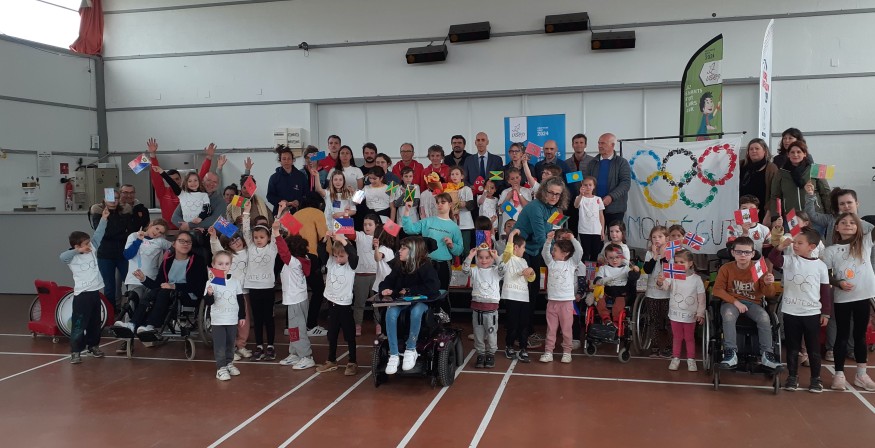Pour le lancement, ce lundi, le groupe scolaire de Montégut et six enfants du centre de Roquetaillade étaient réunis dans la salle des fêtes du village. Partagés entre « délégations nationales » (Norvège, Cameroun, Nouvelle-Zélande, Palau … ), les élèves ont pu s'essayer à différents ateliers, tenus par les comités départementaux (rugby et hockey sur gazon), ou l'USEP et le comité départemental olympique (escrime, fauteuil, cécifoot, boccia), avant de parader, drapeaux en mains et fiers, comme leurs aînés le feront sur la Seine à l'été prochain.