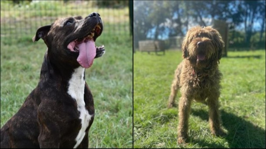 Cette semaine, ce n'est pas un mais deux animaux qui font la une de la rubrique. A gauche, Hélios, un amercian staffordshire terrier non catégorisé âgé de 5 ans arrivé au refuge en juin dernier. Hélios est très gentil, bien dans ses patounes, il est content et a hâte de chaque sortie. Dynamique, il marche bien en laisse, à des bases en éducation, aime se balader, faire de l'agilité et passer du temps avec nous. Il apprécie une vie à l'intérieur avec son confort. Si jardin il y a, il devra être bien clôturé. Il connaît les enfants, s'entend avec certains chiens, en revanche pas de cohabitation possible avec les chats et les autres animaux
