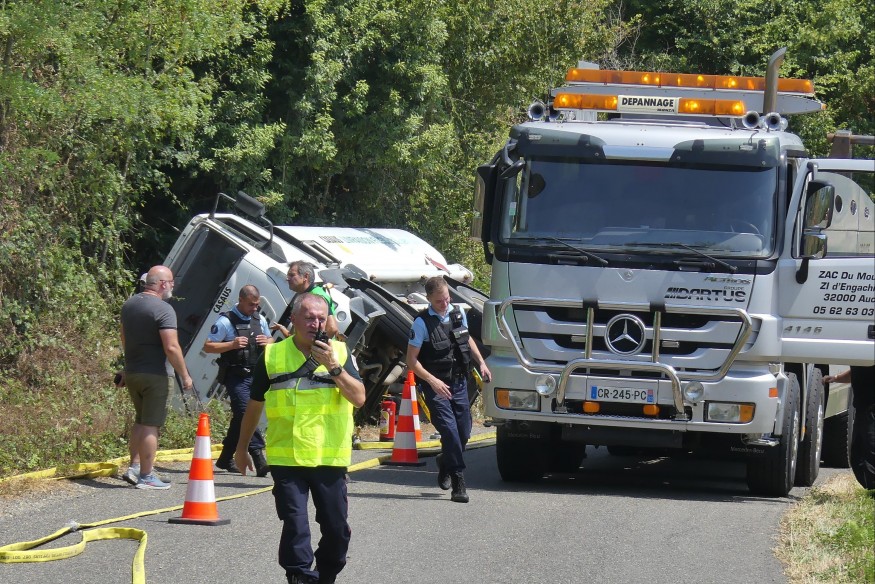 Gers - Le camion transportait 10 000 litres d'hydrocarbures