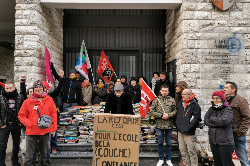 Retour dans nos éditions de la soirée sur cette mobilisation des syndicats d'enseignants ce matin devant les locaux de l'académie à Auch contre la réforme du baccalauréat et ses épreuves de contrôle continu qui se déroulent tout au long de la semaine dans le département. Pour manifester leur opposition à cette réforme « mal préparée » selon eux, la trentaine d'enseignants mobilisée a érigé devant les locaux de l'Inspection Académique, un mur de manuels scolaires. Une action symbolique sur laquelle revient sur notre antenne Léah Tornare, professeur......