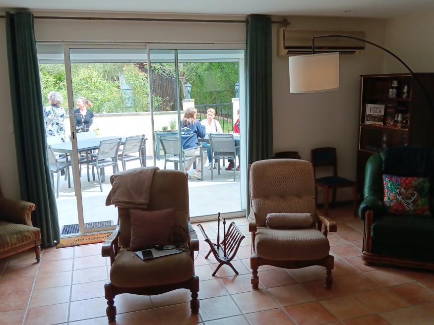 En plus du décor, l'agencement général est censé favoriser la vie en commun de dix séniors qui ne peuvent plus habiter seuls. Chacun sa chambre, avec sécurité aux fenêtres, escalier, toujours avec sécurité, ou ascenseur pour passer de l'étage au rez-de-jardin, et espaces communs, notamment pour les moments de communion que constituent, particulièrement en France, les repas. Ceux-ci sont préparés « tous ensemble » avec l'appui des assistantes de vie « diplômées et expérimentées » qui accompagnent vingt-quatre heures sur vingt-quatre les résidents. « On fait les courses, on aide à élaborer les menus, les animations de l'après-midi, également les gestes liés à l'hygiène : habillage, toilette ... » liste la directrice.