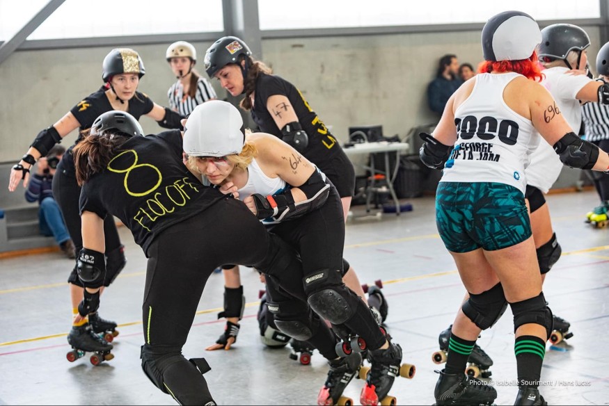 Loin de l'imaginaire collectif, le roller-derby français a pris ses distances avec la forme qu'il a pu revêtir outre-Atlantique à son apogée. De ce côté de l'océan pas de piste incurvée, mais un ovale plat, largement plus pratique à trouver ou à créer. Le jeu est aussi beaucoup moins axé sur les chevauchées folles du jammer, l'attaquant, et s'articule plus sur une sorte de mêlée spontanée permanente, ou chacun des packs tente d'empêcher le marqueur adverse de passer les hanches des quatre bloqueurs, l'objectif simple de la discipline. « C'est un sport qui est très physique, très cardio mais accessible techniquement, sur lequel on peut vite progresser. Parmi les personnes qui ont adhéré, très peu savaient patiner en arrivant. Ca fait trois ans qu'on a créé l'équipe, on accueille des nouvelles recrues chaque années et on quand même une progression physique et technique assez rapide » explique Johanna.