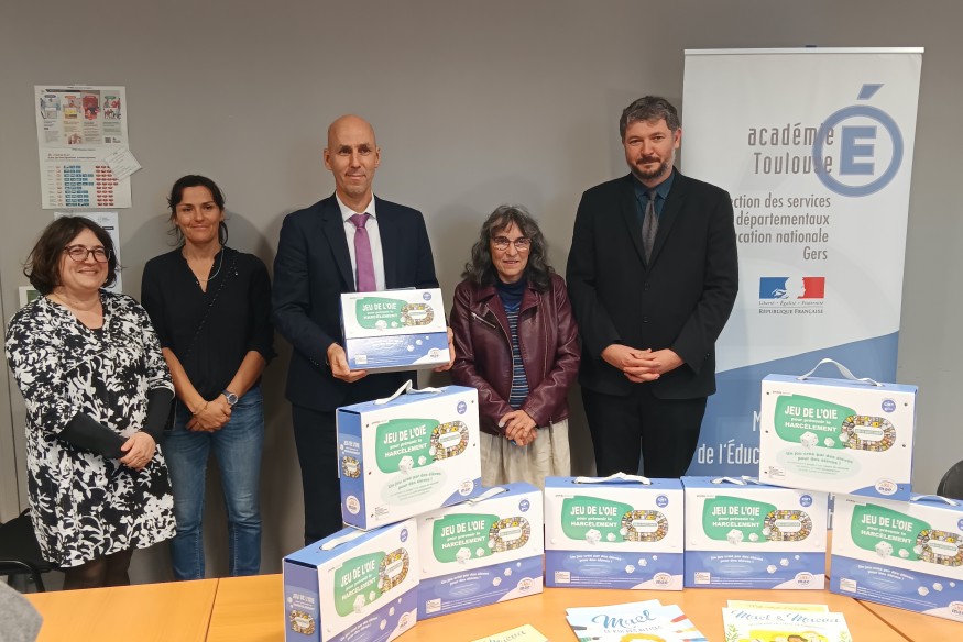 Dans le cadre du programme pHARe (lutte contre le harcèlement à l'école), la MAE du Gers, producteur du jeu de l'oie « non au harcèlement » a fait don à la direction académique du Gers de huit exemplaires de l'outil pédagogique pour cycle 3 (CM2-5ème). Comme le jeu de l'oie, la sociabilisation des enfants et des adolescents n'est jamais un long fleuve tranquille, et prend parfois des méandres que chacun préfererait éviter. Le harcèlement scolaire, qui toucherait près d'un million d'élèves chaque année en France, est une de ces dangereuses sinuosités, qui ne......
