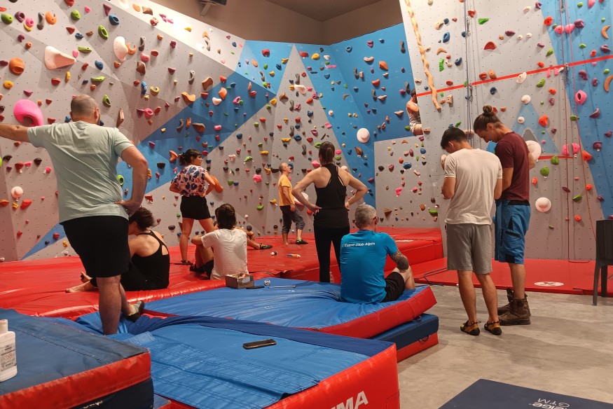 Doté d'une salle d'escalade depuis 2022, le Club Alpin Français Auch-Gers étend peu à peu sa corde. Coup d'oeil sur une pratique en salle en verve à quelques semaines des Jeux Olympiques. Le bruit mat du tapis signale une nouvelle chute, mais déjà la paroi est prise d'assaut. La durée de vie d'un grimpeur sur un bloc n'excède généralement pas la minute, soit à vaincre le mur de trois à quatre mètres de haut, soit à lui céder une manche. Peu importe, la discipline a instauré une prime au risque : tomber c'est se relever et repartir à l'attaque des prises......