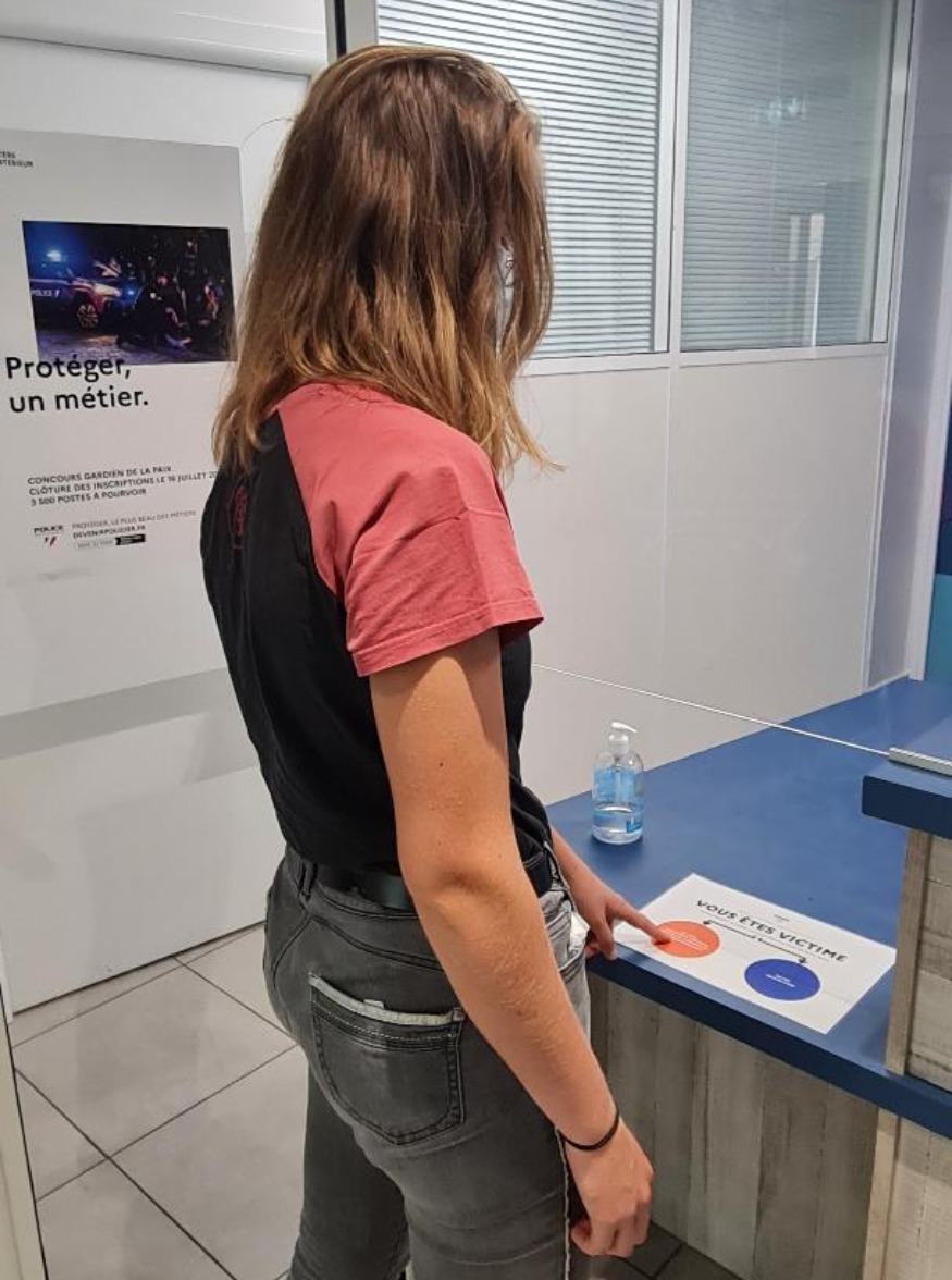 Chaque victime qui se présente au commissariat a la possibilité de choisir, sur le bureau d'acceuil, de la main, entre deux couleurs. Orange pour dénoncer une infraction nécessitant une confidentialité renforcée (violences conjugales, violences intrafamiliales et atteintes sexuelles) et bleu pour toute autre motif. En cas de la désignation de la couleur orange, correspondant à une infraction dite sensible (violence conjugale, intrafamiliale, sexuelle), l’agent d’accueil ne questionnera pas la victime sur les faits qu’elle vient dénoncer et la dirigera prioritairement vers un officier de police judiciaire, comme l'explique le capitaine Christophe Rechou, chef du service de voie publique.