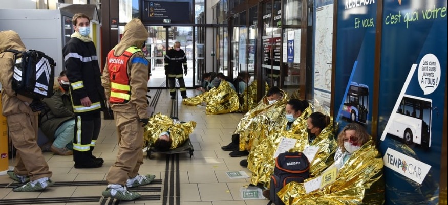 Ce que l'on a testé répondait à deux types d'événements : d'une part un événement qui fait de nombreuses victimes, et donc impliquer une chaîne particulière de prise en charge des victimes et de relation avec les structures de soin. Il a permis de tester pour l'ensemble de ces services la capacité à répondre et à organiser une réponse à tout événement majeur. On a testé aussi un plan relatif à la diffusion de produits chimiques, en l’occurrence c'est un obus qui a explosé avec un gaz et qui avait nécessité la prise en charge d'une quarantaine de personnes au sein de la gare.